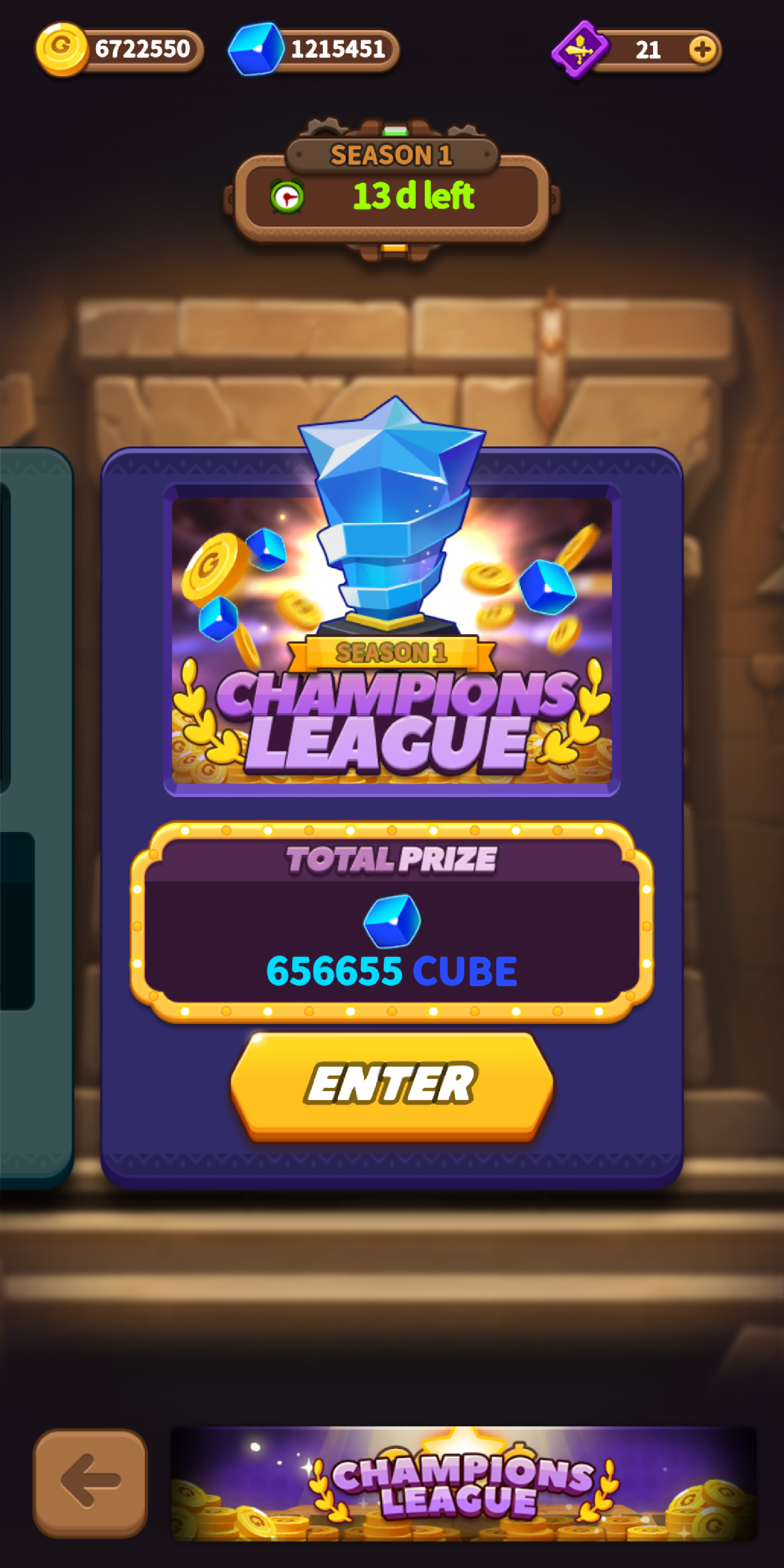 Users have to purchase a Season License with CUBE to enter the Champions League! Users will earn huge amount of CUBE rewards as the Champions League Prize!
