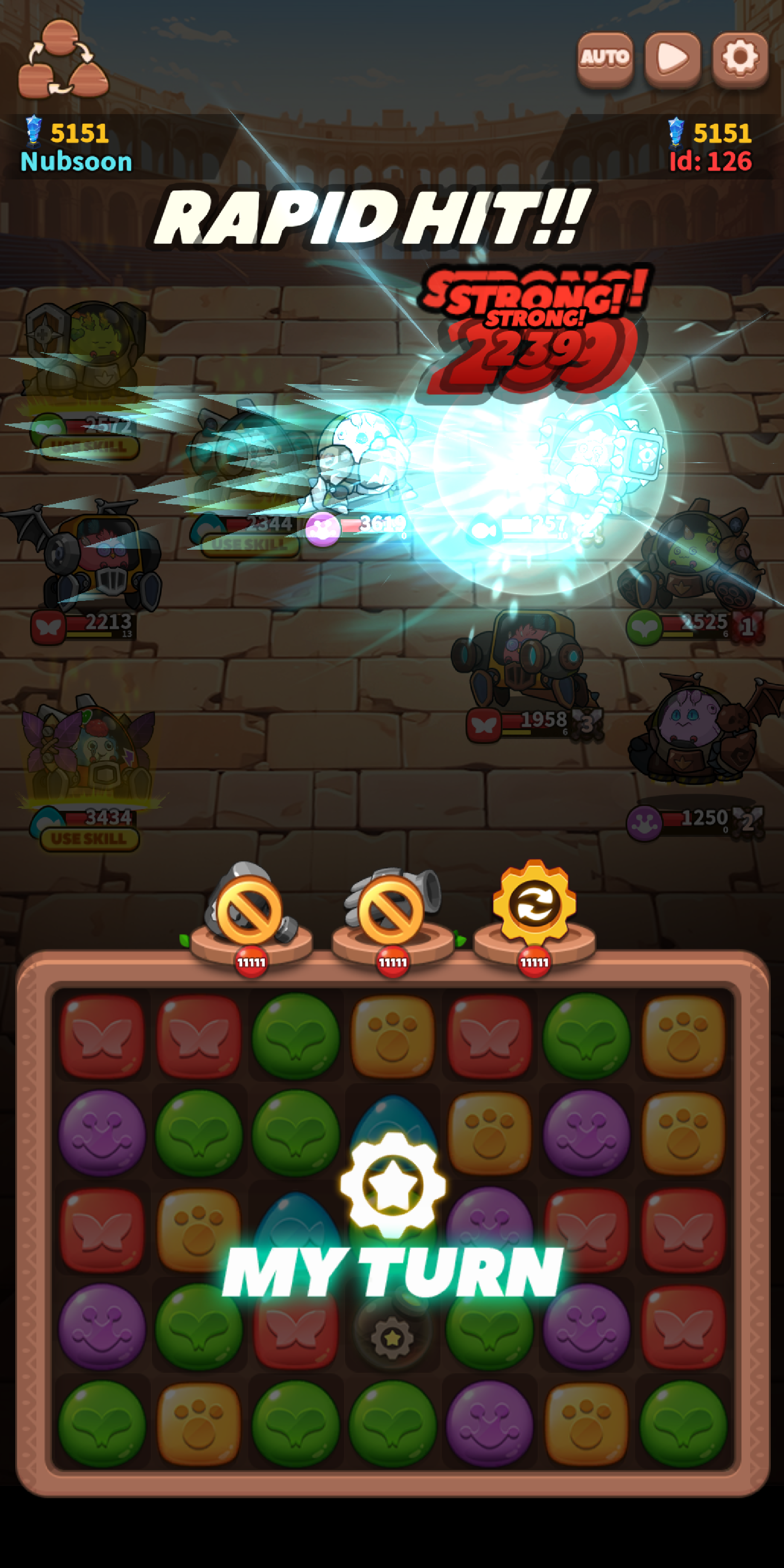Among the attack skills, there are area-of-effect skills that target multiple enemies and single-target attack skills. Some skills activate buffs or debuffs, raising our team's attack power or lowering the opponent's, adding another layer of strategy to battles.